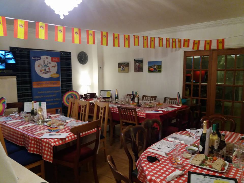 These events are hugely enjoyed by all who attend. Venues are chosen to match the evening's theme, traditional French and Spanish fayre, drinks and activities are all carefully selected. Good company, mirth and merriment are excellent aids to fun learning!
